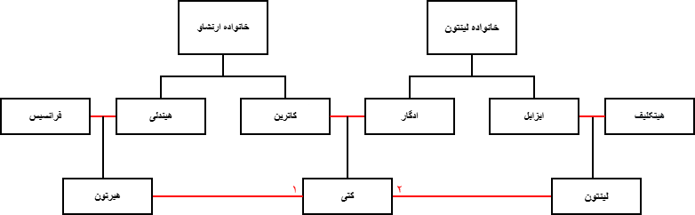 داستان بلندیهای بادگیر، فضایی تاریک و عاشقانه دارد و برخلاف رمانهای عاشقانهی کلاسیک، خبری از قهرمانان عاشقپیشهی مرسوم نیست و داستان بیشتر حول مفهوم خشونت و انتقام میچرخد. از آنجا که اسامی شخصیتها و روابط بینشان میتواند کمی گهراهکننده باشد، من یک نمودار از روابط و اسامی درست کردهام که در تصویر زیر میتوانید آن را ببینید: (برای بزرگتر شدن تصویر روی آن کلیک کنید.)